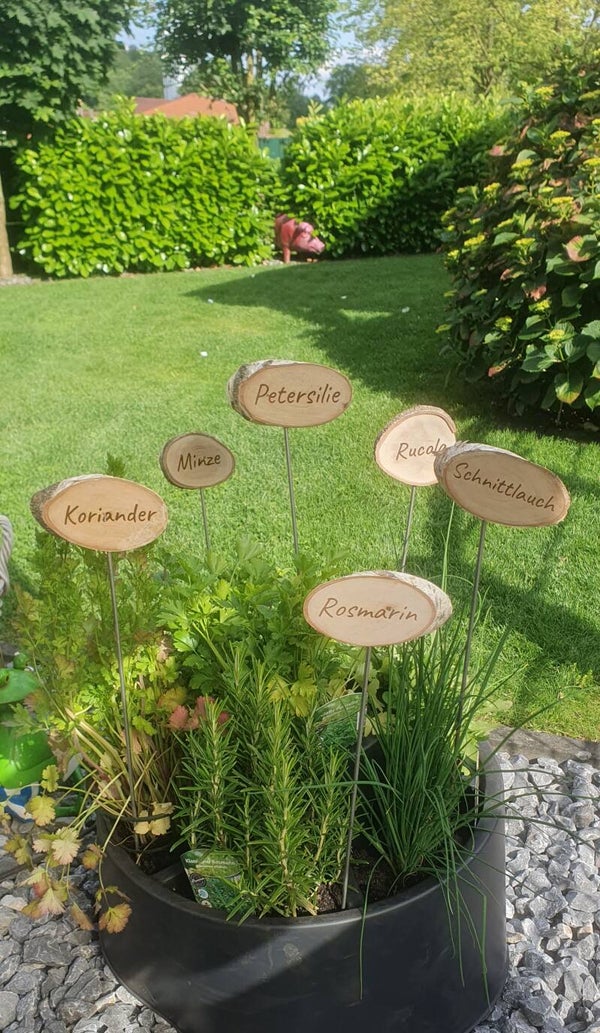 Kräuterschilder verschiedene Sorten. Jedes Schild ist ein einmaliges Produkt, da aus Birke gefertigt.