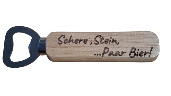 Du suchst einen Hingucker auf Deiner Party - der klassische Holz-Flaschenöffner mit Namen oder mit Wunschtext graviert. Gestalte Deinen eigenen Flaschenöffner. Ob witziger Spruch, individueller Text oder Ihr Name – hier sind DeinerKreativität keine Grenzen gesetzt. Zudem eignet sich der Flaschenöffner auch hervorragend als Geschenkidee zu verschiedenen Anlässen, zum Beispiel zum Vatertag, zum Geburtstag oder als Mitbringsel zur Grillparty.