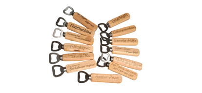 Du suchst einen Hingucker auf Deiner Party - der klassische Holz-Flaschenöffner mit Namen oder mit Wunschtext graviert. Gestalte Deinen eigenen Flaschenöffner. Ob witziger Spruch, individueller Text oder Ihr Name – hier sind DeinerKreativität keine Grenzen gesetzt. Zudem eignet sich der Flaschenöffner auch hervorragend als Geschenkidee zu verschiedenen Anlässen, zum Beispiel zum Vatertag, zum Geburtstag oder als Mitbringsel zur Grillparty.